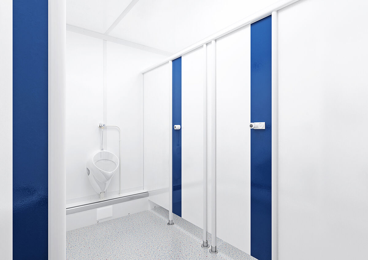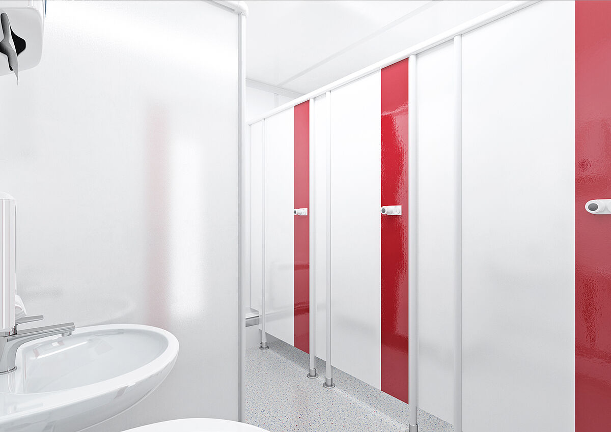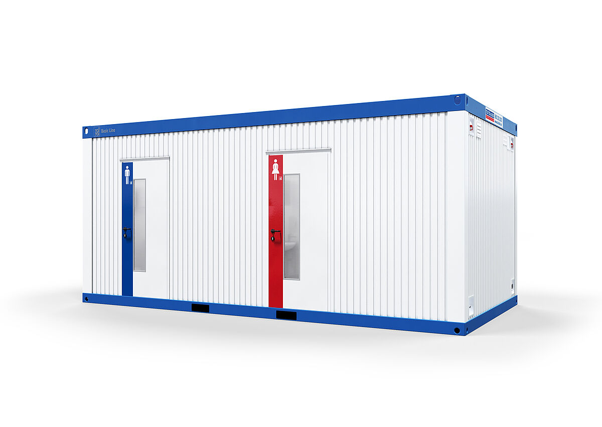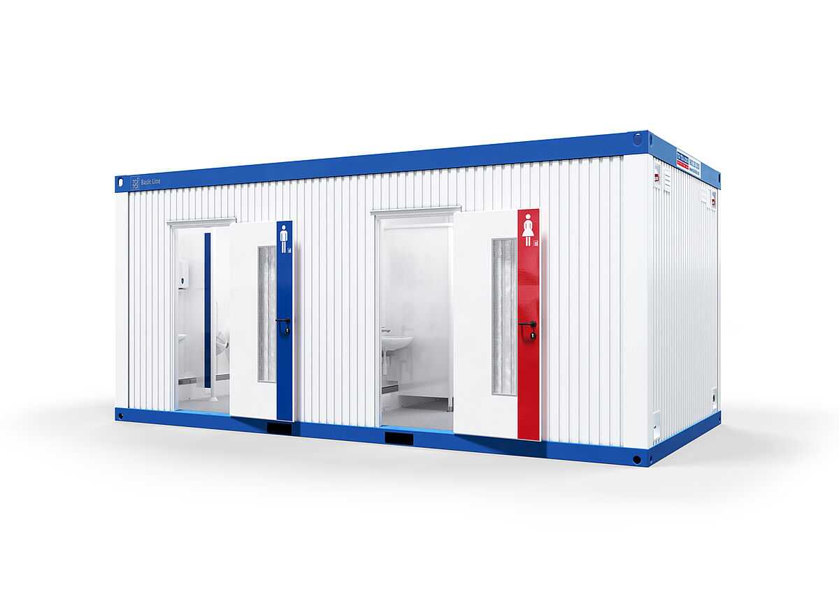 The range of features included in the approximately 18 square meters of the W/M toilet containers from our Basic Line Plus range has to be seen to be believed. Thanks to the ideal layout, they can be used by up to ten people simultaneously.