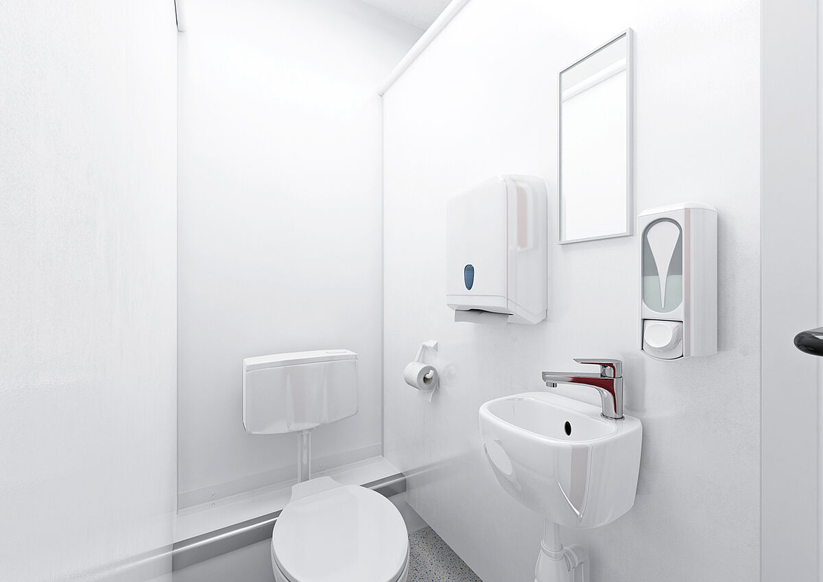Each toilet cubicle has its own wash basin, soap dispenser, and towel dispenser. So you’re good to go at any and every professional event. These containers are ready-assembled on delivery and can be connected to the utility network on request. No assembly time required – making life so much easier!