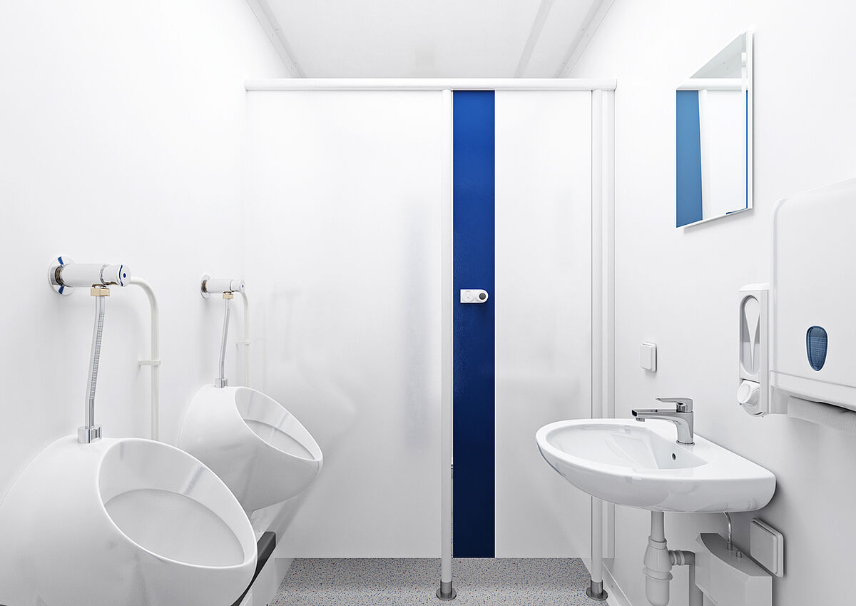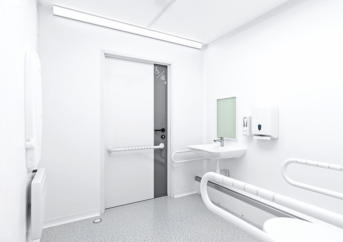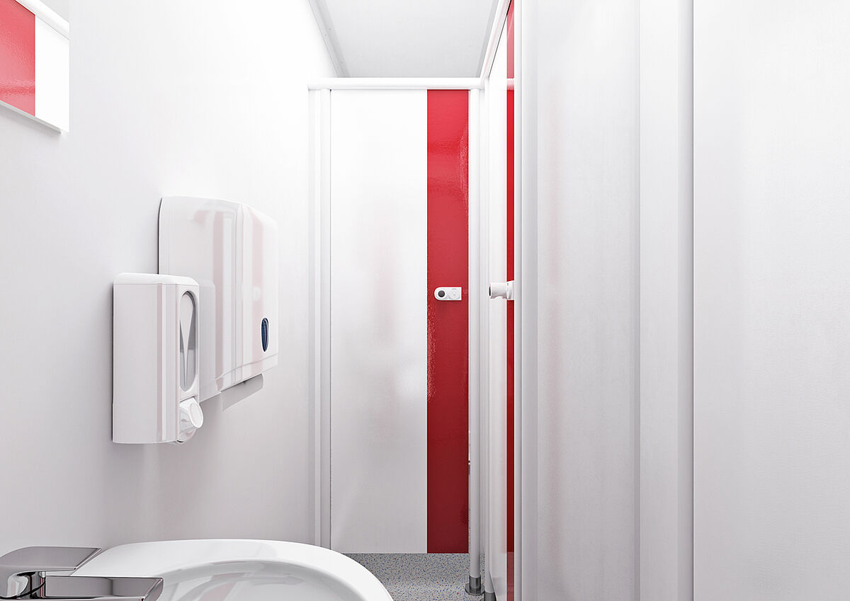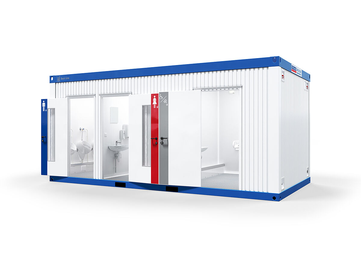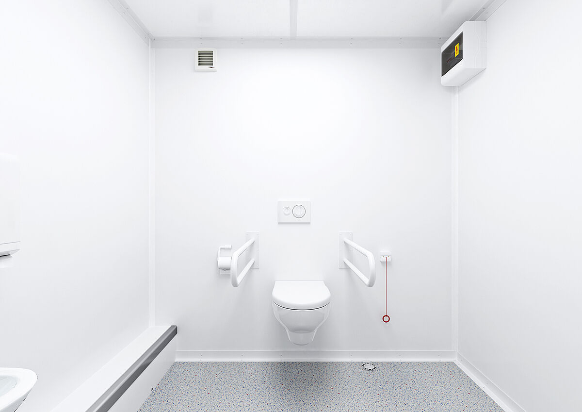 Inside, the container also caters to special needs, with facilities for the disabled as well as a baby changing table. In addition, all compartments are fitted with water-saving tapware, benefiting both the environment and your purse.