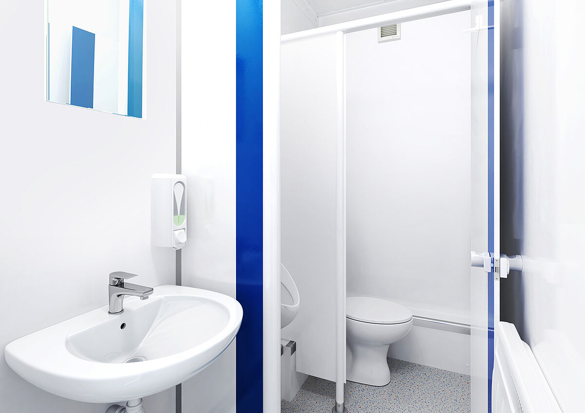 Thanks to their intelligent design, these compactly sized sanitary containers save both space and money. Yet they still include all the comforts necessary to make each visit as pleasant as possible – from soap dispensers and paper towel dispensers through to a heater for cold days. The smallest version in the Basic Line range, this container nonetheless has an appealing and modern design, pleasant lighting, and is easy to clean.