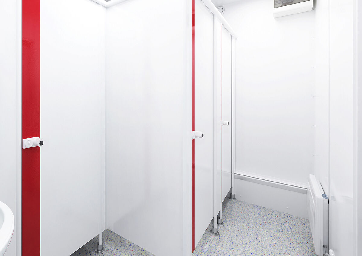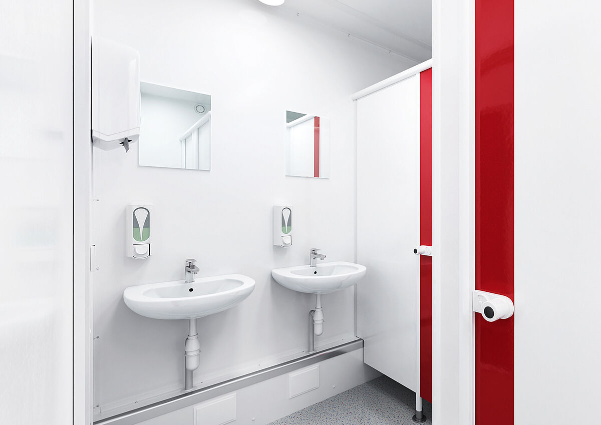 Our Basic Line W/M sanitary containers have a surprisingly spacious feel. 15 m² in size, every square centimeter has been utilized to the maximum possible degree. Thanks to their ideal layout, these sanitary containers can be used by up to eight people simultaneously.