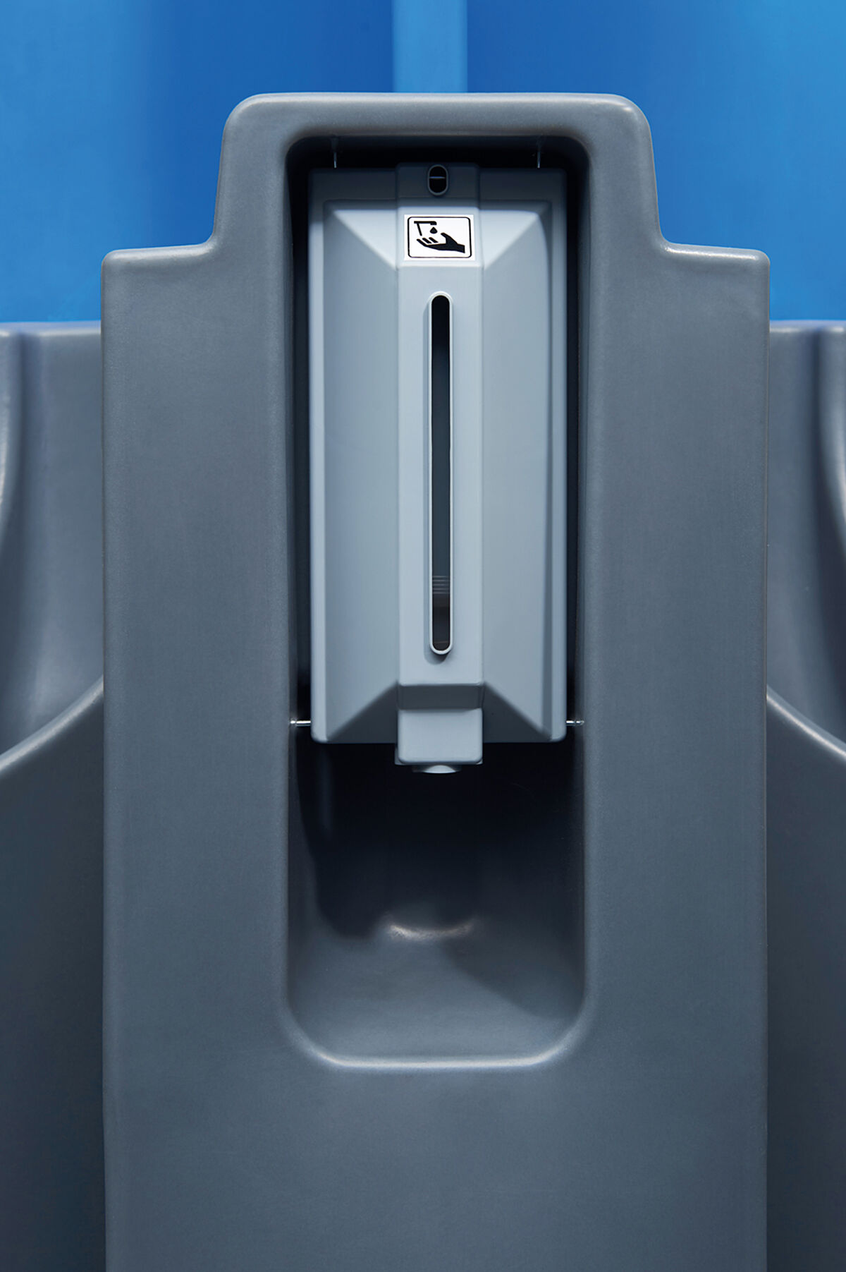 You’d like to prevent long queues from forming outside the toilets at professional events? Or prevent people from urinating in the bushes in a park or recreational area? DIXI URI® is the ideal answer! Measuring just 1.4 m², this urinal block offers sufficient space for up to four people. With four integrated dispensers for occupants to disinfect their hands, it’s also particularly user-friendly. No other urinal on the market offers this feature. As such, DIXI URI® is the perfect addition to your portable toilets.