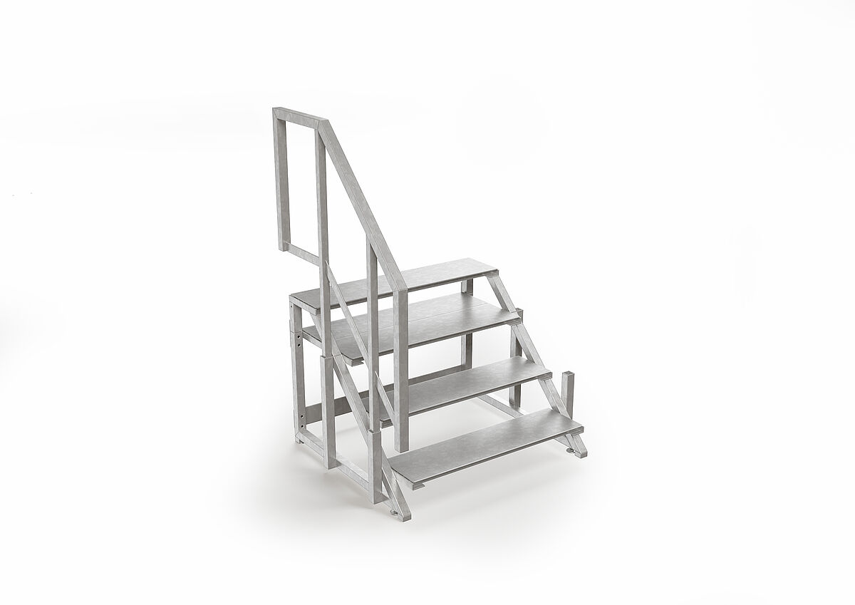 The sewage tanks are available in two versions: with or without integrated stairs. The tank with integrated stairs is installed below the sanitary container. Tank and container thus become one unit. The sewage tank without stairs can be placed directly under the sanitary container. For comfortable access to the container, we offer suitable tank stairs in this case.